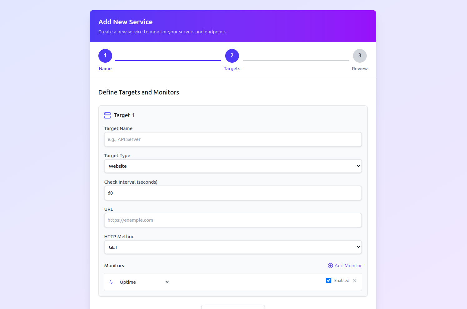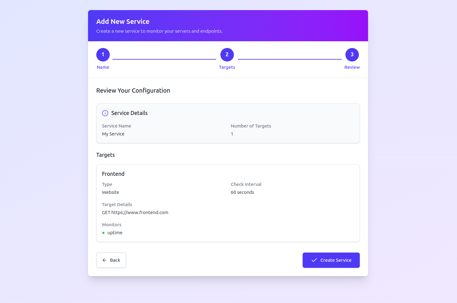 Een configuratie bestaat uit een service. Bij elke service is het mogelijk om targets in te stellen, elk met een eigen monitor. Middels een mooi gestileerde grafiek kun je eenvoudig inzicht krijgen in de waarden die daaruit voortkomen.